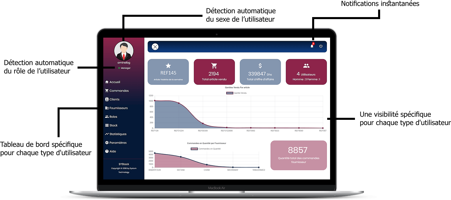 Le progiciel SYStock est une solution sur mesure, déstiné aux moyennes et grandes entreprises pour la gestion totale et transparente de leurs stocks, finances et ventes, il contient plusieurs fonctionnalités personalisable aux besoins de chaque entreprise à savoir: